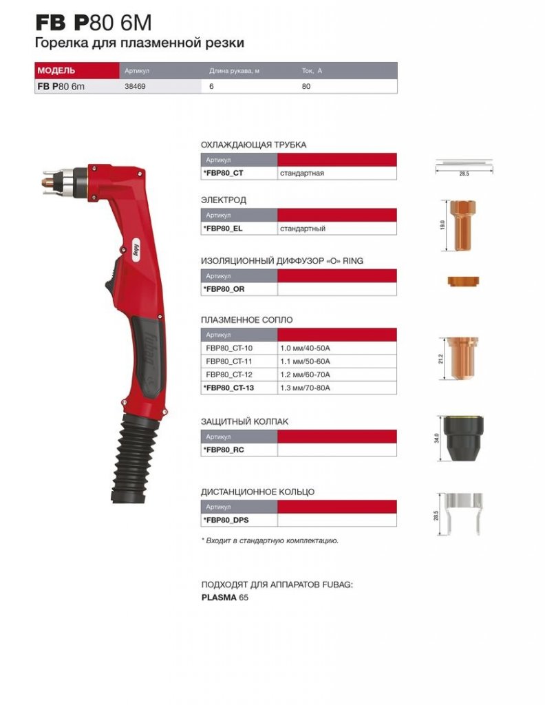 Инструкции о FUBAG Горелка для плазмореза FB P80 6m